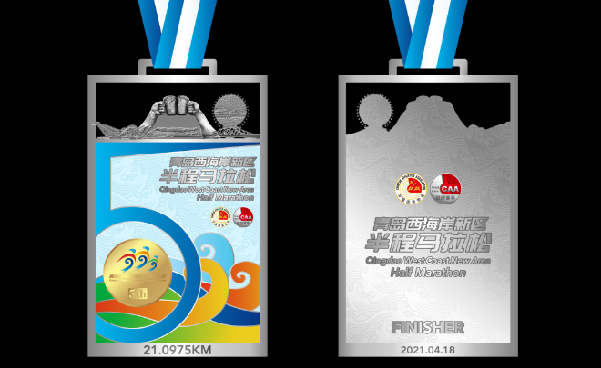半程马拉松比赛在金沙滩啤酒城啤酒大道起跑,至金沙滩路右转,沿金沙滩路向东直行至P6停车场折返,先后沿金沙滩路、银沙滩路、连三岛路绕西环岛一周返回啤酒城,沿海韵大道向东冲刺至终点。
