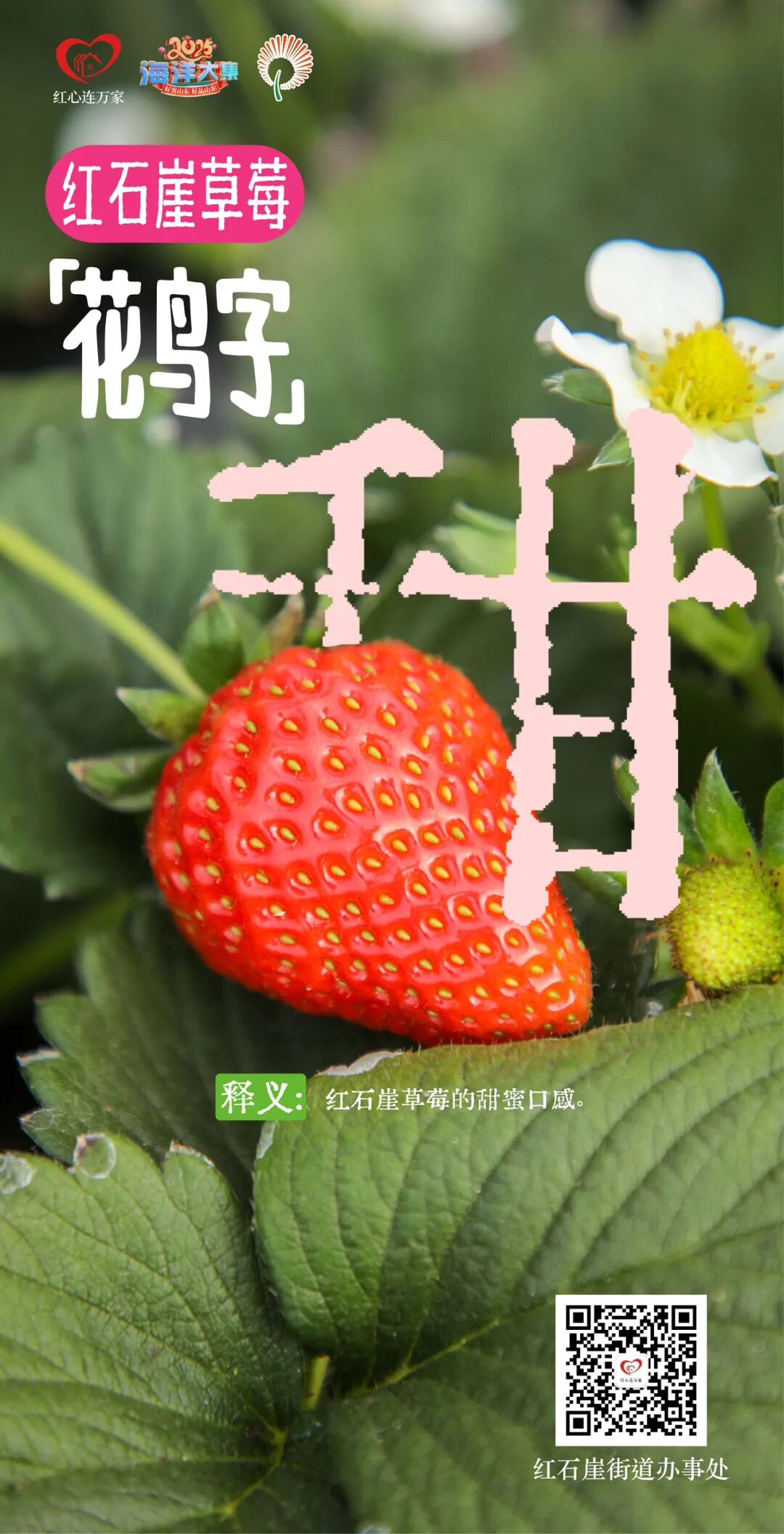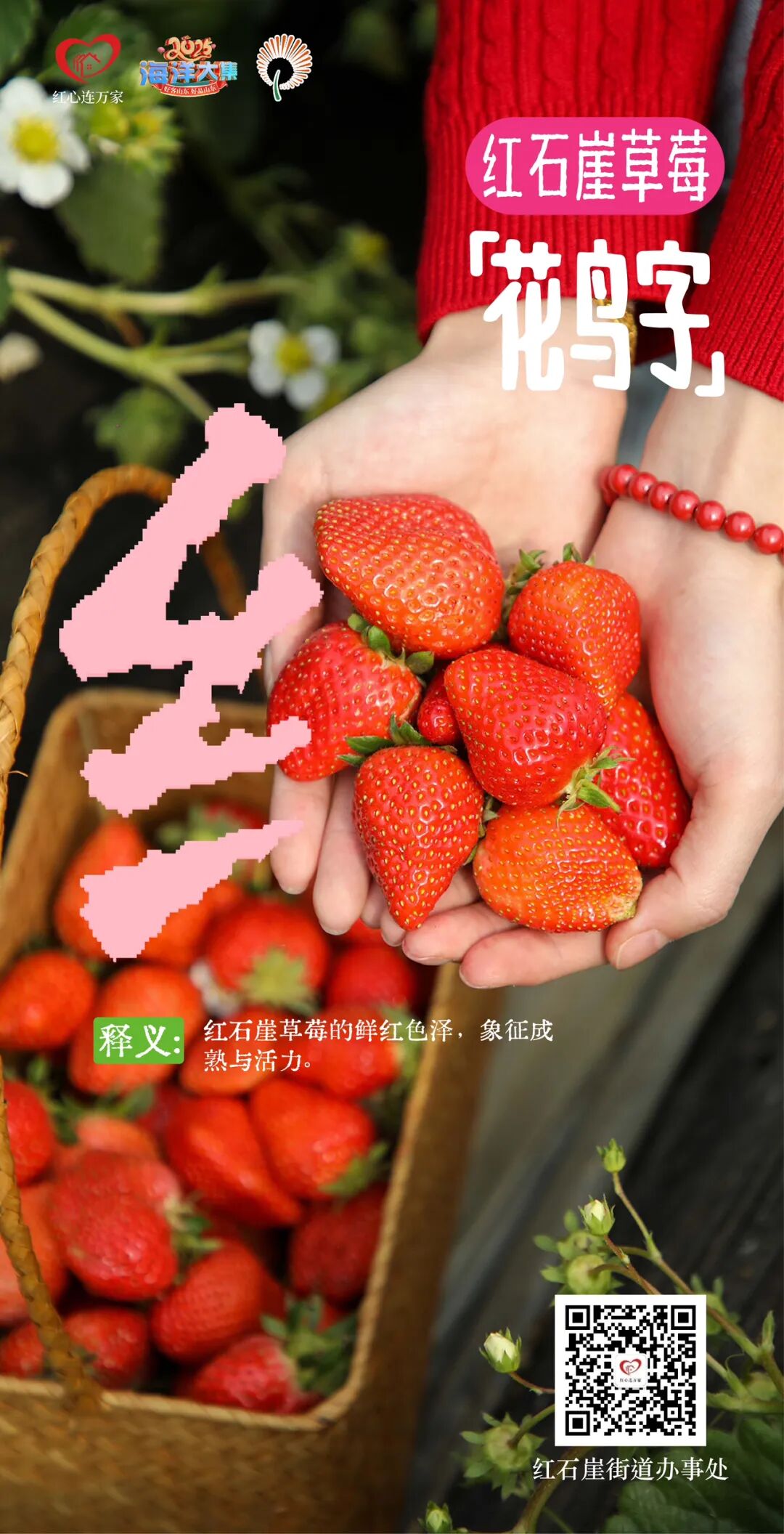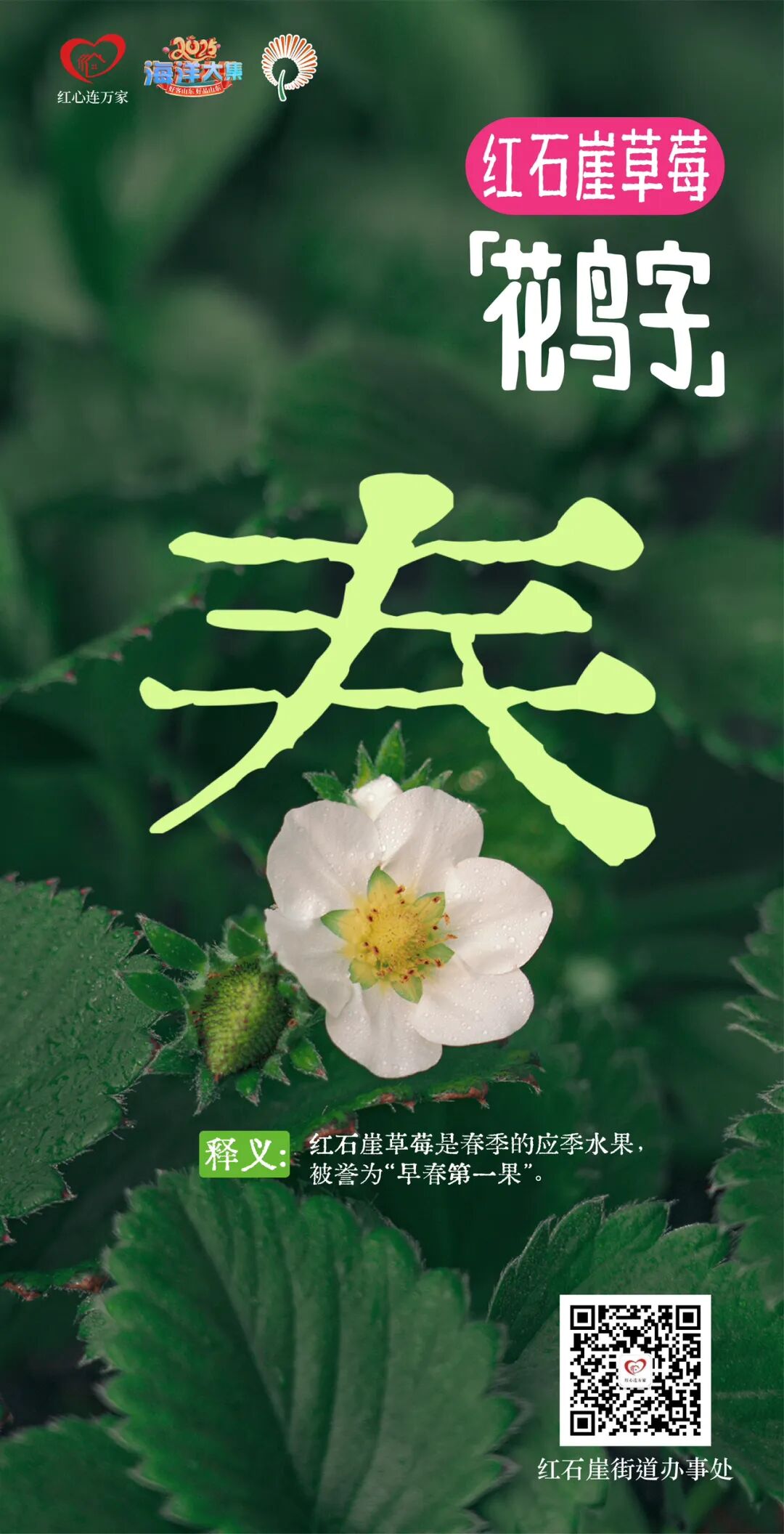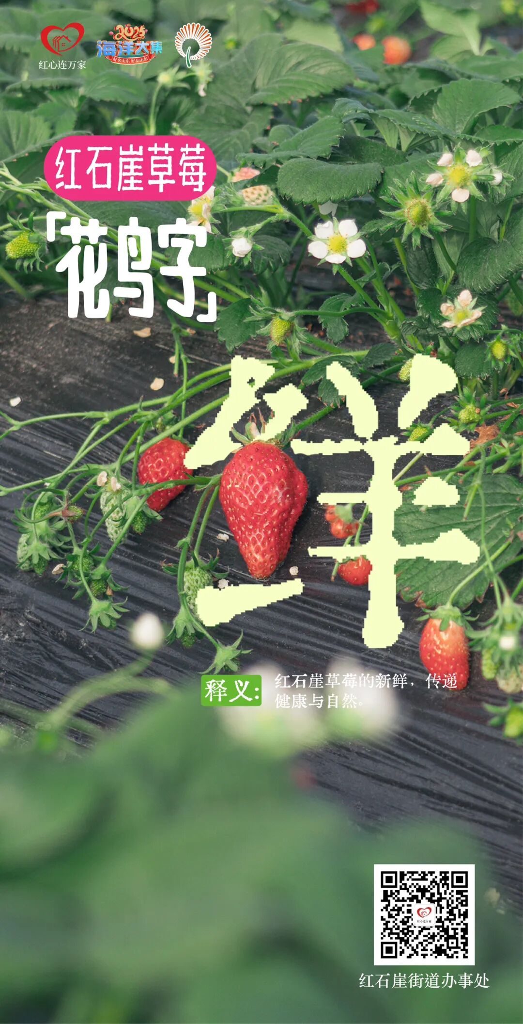 当草莓的香甜遇上花鸟字的诗意,红石崖雷家店子的春天便有了别样的韵味。红石崖创意花鸟字海报,将草莓的鲜美与自然的灵动融为一体,带你走进这片“莓”好天地。