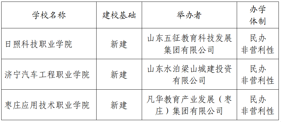 3月12日,山东省教育厅对拟申报的3个高校设置事项予以公示:关于拟申报高校设置事项的公示根据《中华人民共和国高等教育法》《中华人民共和国职业教育法》《中华人民共和国民办教育促进法》《山东省高等职业学校设置暂行办法》等法律法规和有关政策规定,现对拟申报的3个高校设置事项予以公示。公示期为2025年3月12日至2025年3月18日。公示期内,如有不同意见,请通过邮寄或电子邮件(扫描件)方式据实向山东省教育厅反映。以单位名义反映的应加盖公章,以个人名义反映的应署真实姓名、身份证号和联系电话,逾期不予受理。 受理部门:山东省教育厅发展规划处(济南市市中区舜耕路 60 号),邮编:250002,联系电话:0531—51793707,工作邮箱:fzghc@shandong.cn。附件:拟申报高校设置事项基本情况.docx山东省教育厅2025年3月12日拟申报高校设置事项基本情况来源│山东省教育厅网站
