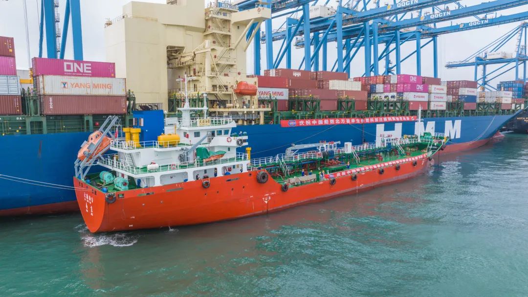6月14日,山东港口青岛港前湾港区109泊位成为航运业瞩目的焦点。“大源油8”轮稳稳靠泊,将为国际巨轮“HMM VANCOUVER”精准加注1300吨B24生物燃料油。此次加注业务,不仅标志着中国北方港口首单国际航行船舶生物燃料油加注业务在青岛自贸片区成功落地,更标志着片区在推进绿色航运发展、助力青岛国际航运中心建设进程中迈出重要一步。