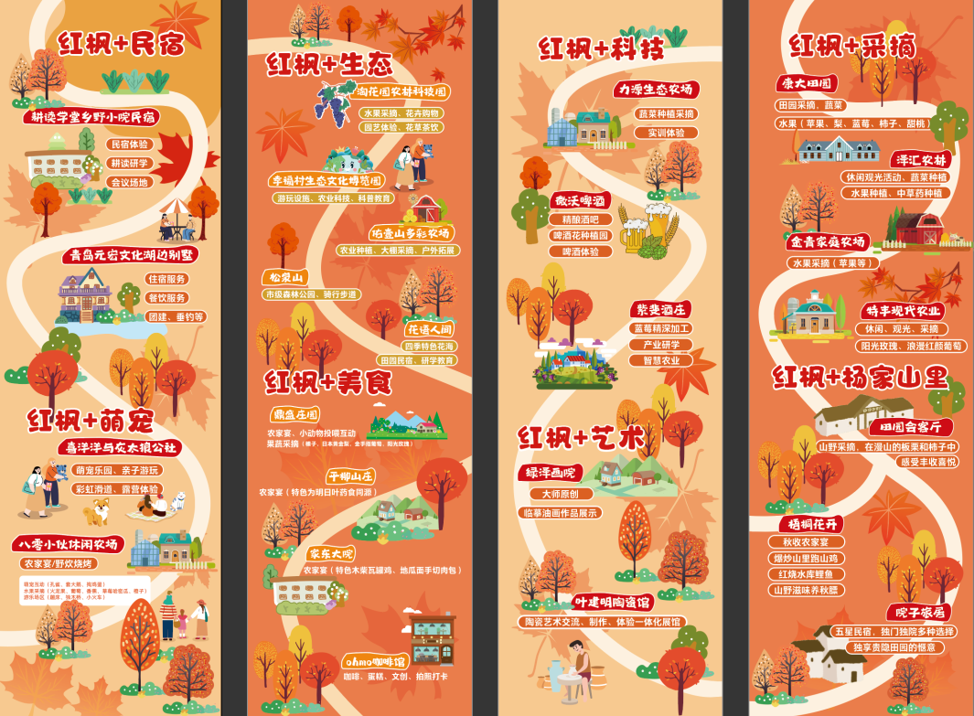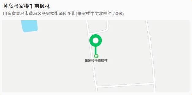 地图搜索“黄岛张家楼千亩枫林”。红枫林设置南门、东门两个行人通道。其中,南门可进可出,东门只进不出,请根据现场导视及工作人员指示通行。