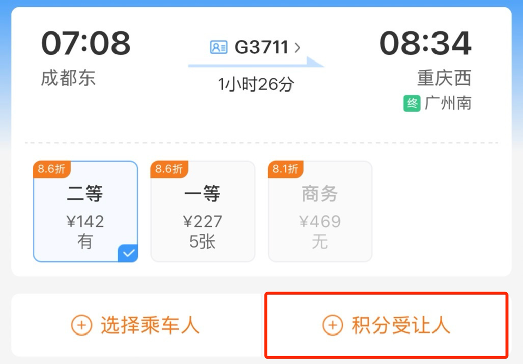 10月20日起,常旅客会员积分应用场景将新增列车座位升席功能,会员本人可使用积分在列车上兑换办理原车票未乘区间内的任意区间座位的升席。