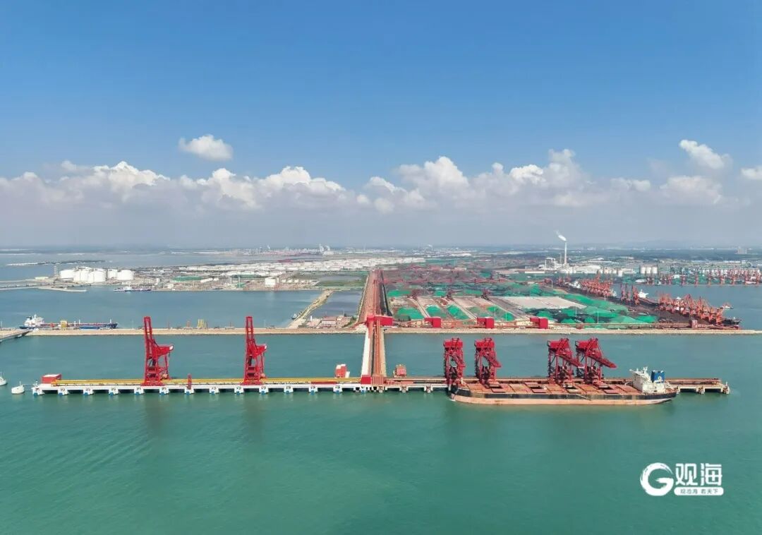 本次验收的泊位为青岛港董家口港区第二座40万吨矿石泊位,主要建设1个30万吨级铁矿石泊位(水工结构按靠泊40万吨散货船设计和建设),配备2台3500吨/小时卸船机、1条10500吨/小时皮带流程,同步新增堆场面积125万平方米,设计年通过能力达1600万吨。