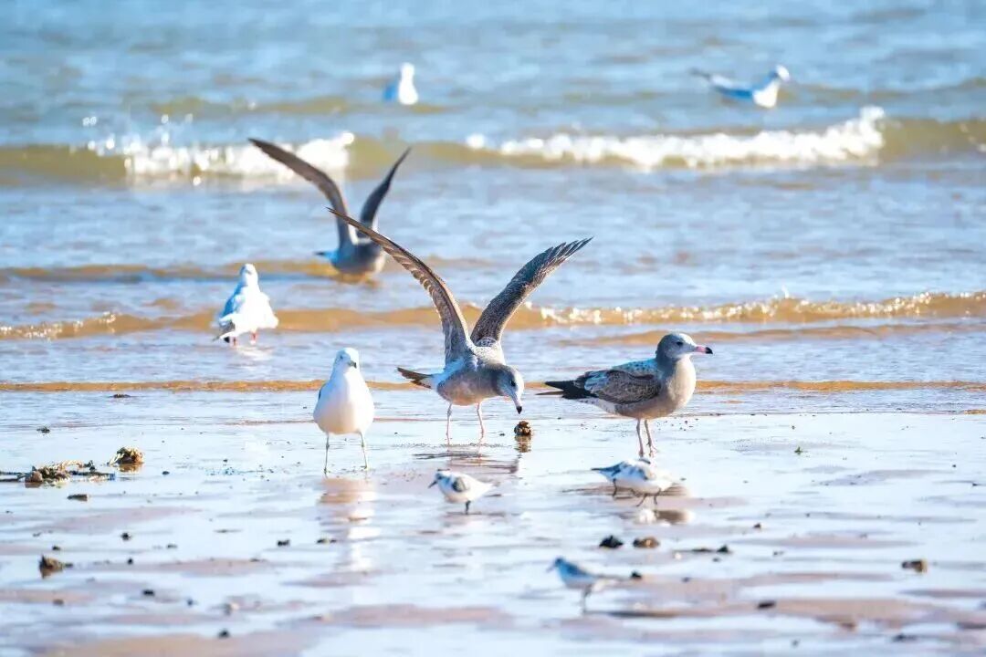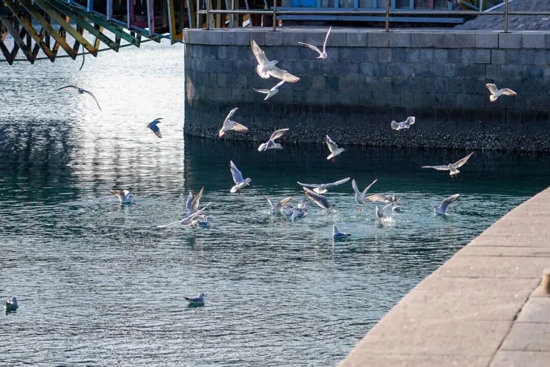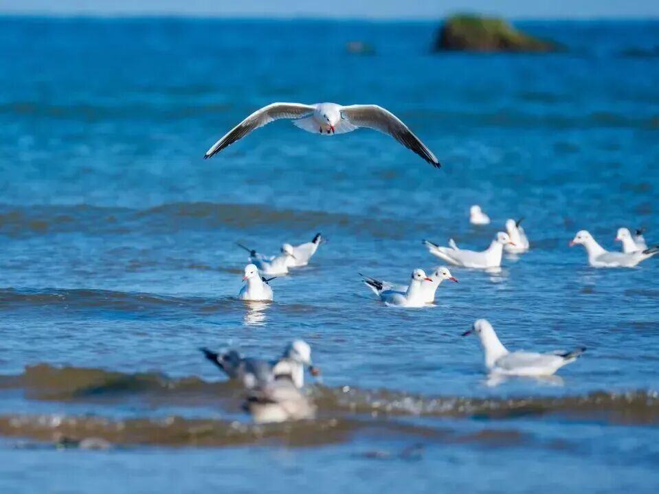 成群海鸥翩然起舞,