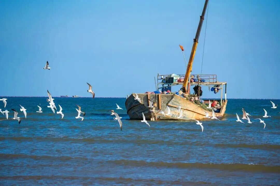 海鸥翩跹,渔船轻荡,