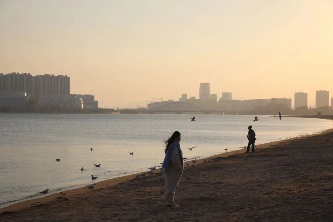 与沙滩上漫步的游人共同入画,
