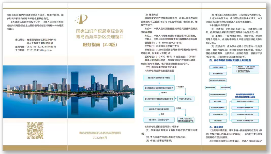 青岛西海岸新区国家商标业务窗口2021年获国家知识产权局批准设立,是省内18个窗口中唯一设在区县级的载体。