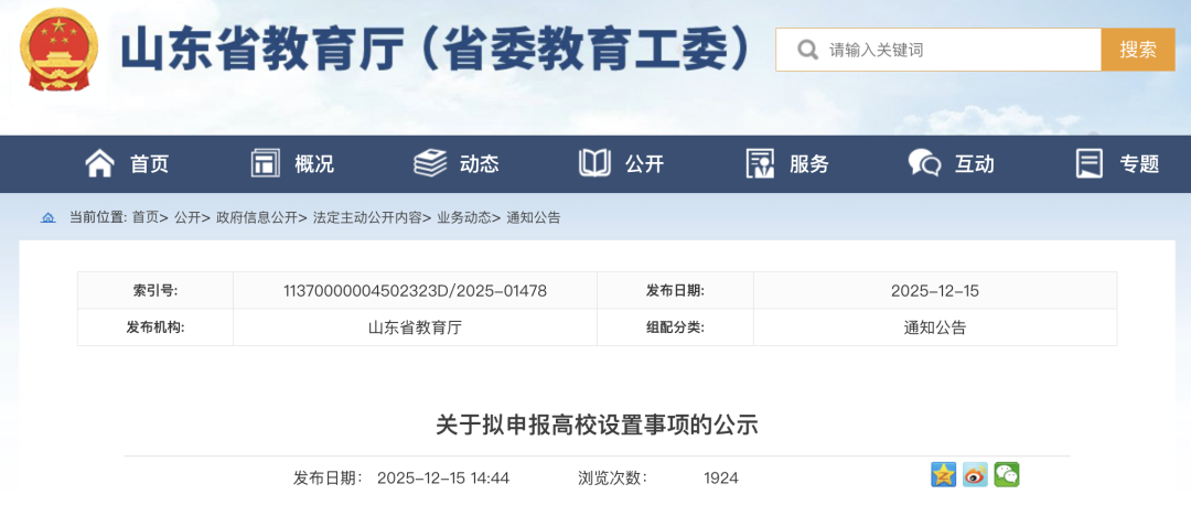 关于拟申报高校设置事项的公示