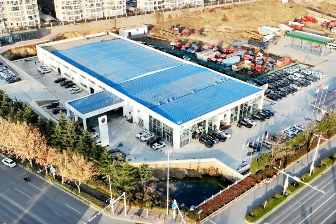 黄河路作为新区东部城区东西向的交通要道,沿途遍布大量居民小区和工业地带,对汽车维修等业态的需求较为旺盛。灵珠山街道因地制宜、多方洽谈,引入德鑫一通汽车绿能互联科技园项目,将此处闲置土地重新进行开发利用。该项目主要推动原品牌4S店恢复营业,同时引入新品牌新能源商用车4S店,并配有汽车租赁、汽车检测、光伏发电、储能、充电桩等服务设施。