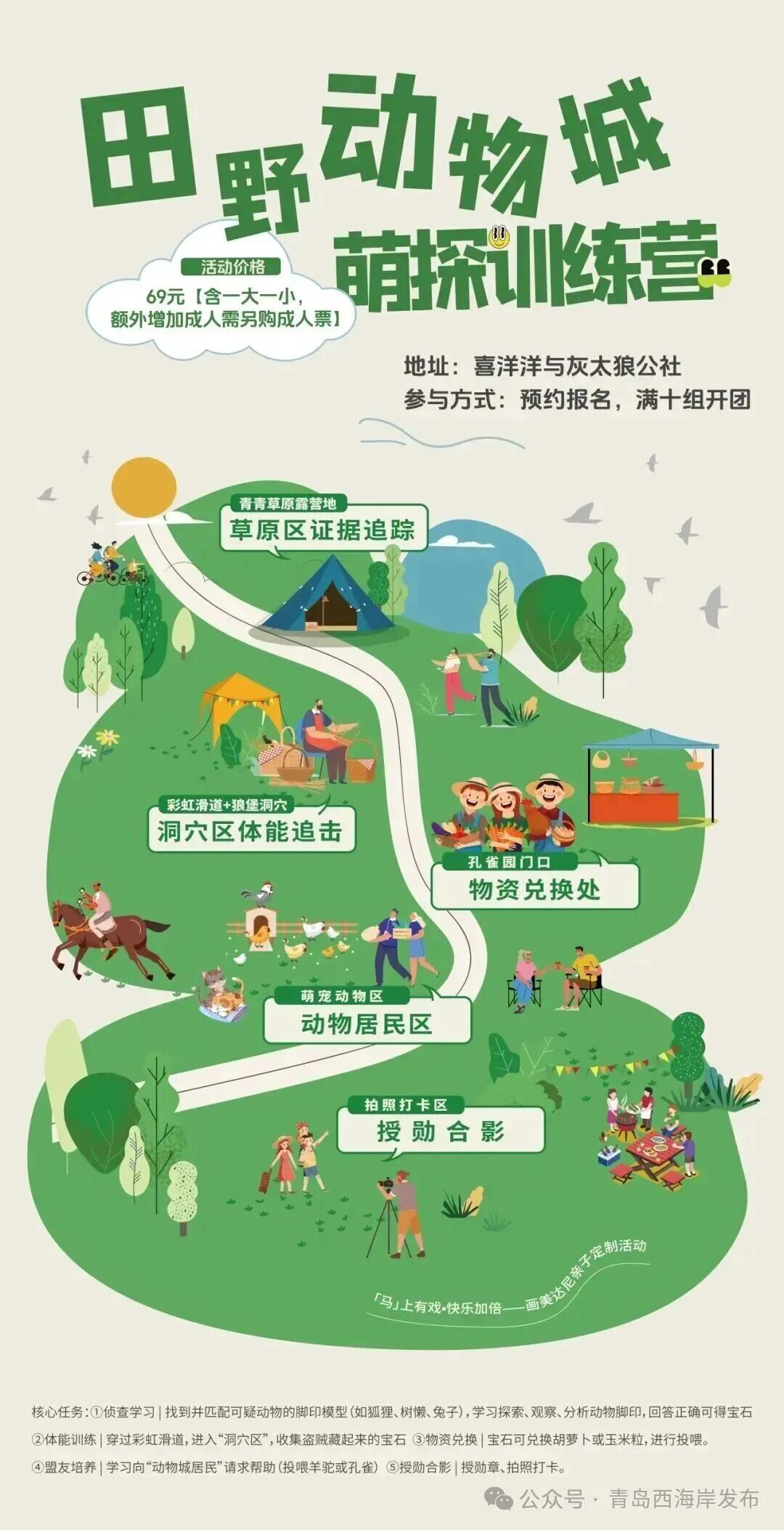 来“喜洋洋与灰太狼公社”参与“萌探训练营”——穿越公社里不同的生态主题区,完成一系列有趣的任务,收集代表“友爱”“勇气”与“智慧”的印章,最终成为一名合格的“荣誉萌探”!