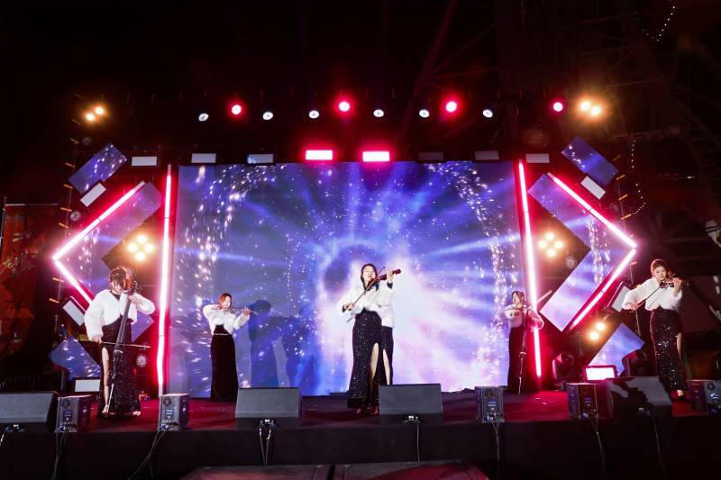 在随后的新年音乐会上,“电音燃动”“潮流集结”“前卫破晓”三大篇章接连上演,串联起乐队激情演出、幸运金条抽奖及全场互动游戏,持续加热现场气氛。