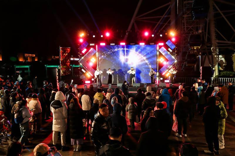 当晚,青岛嘉年华滨海旅游休闲街区在夜幕中化为一片流光溢彩的欢愉海洋。琴岛之星摩天轮下,人潮如织,一场融合传统年味与时尚潮流的新年盛典,随着星光缓缓拉开序幕。