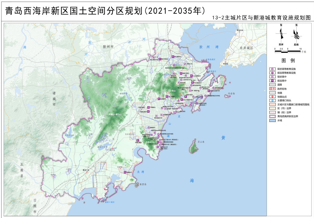 2050年发展目标:物质文明、政治文明、精神文明、社会文明、生态文明全面达到新高度,将西海岸新区建设成为令人向往的卓越海湾都市区。