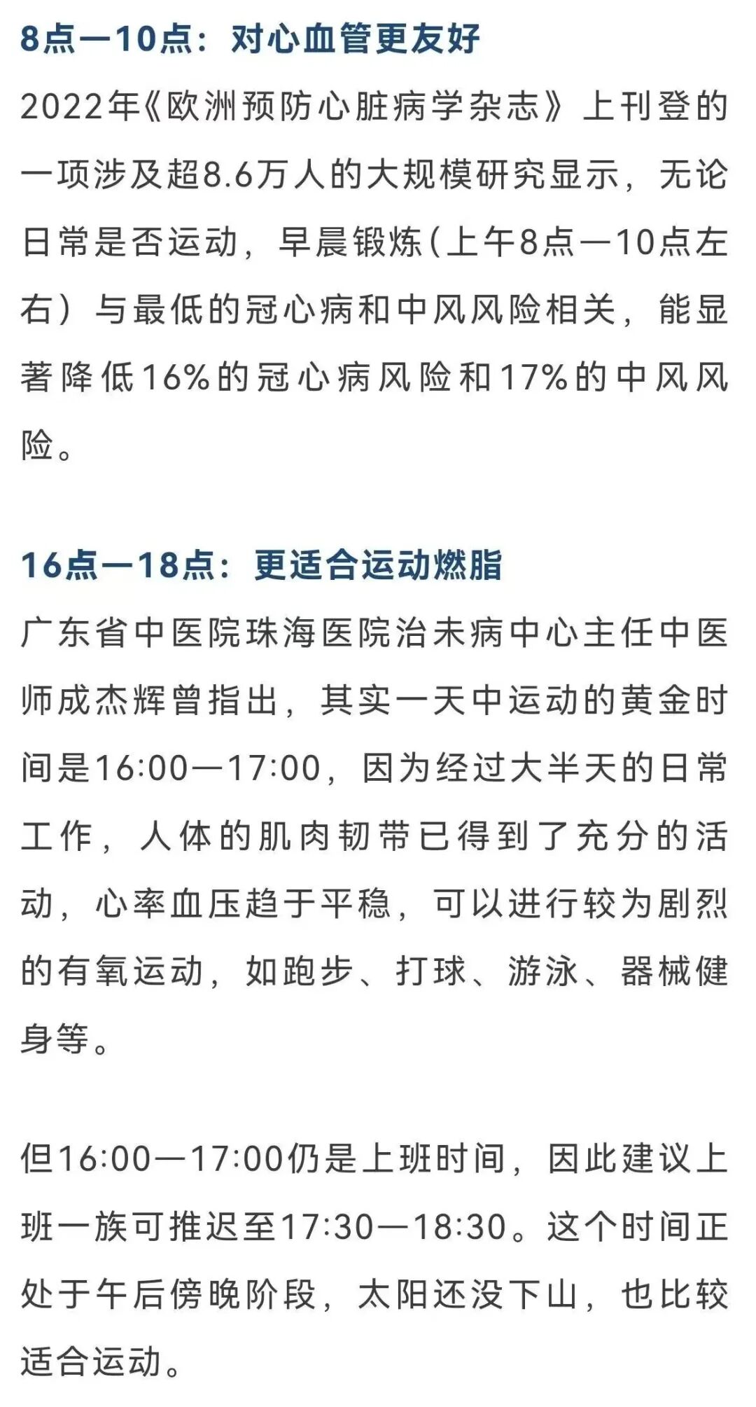 2. 运动黄金时段:8:00—10:00、16:00—18:00