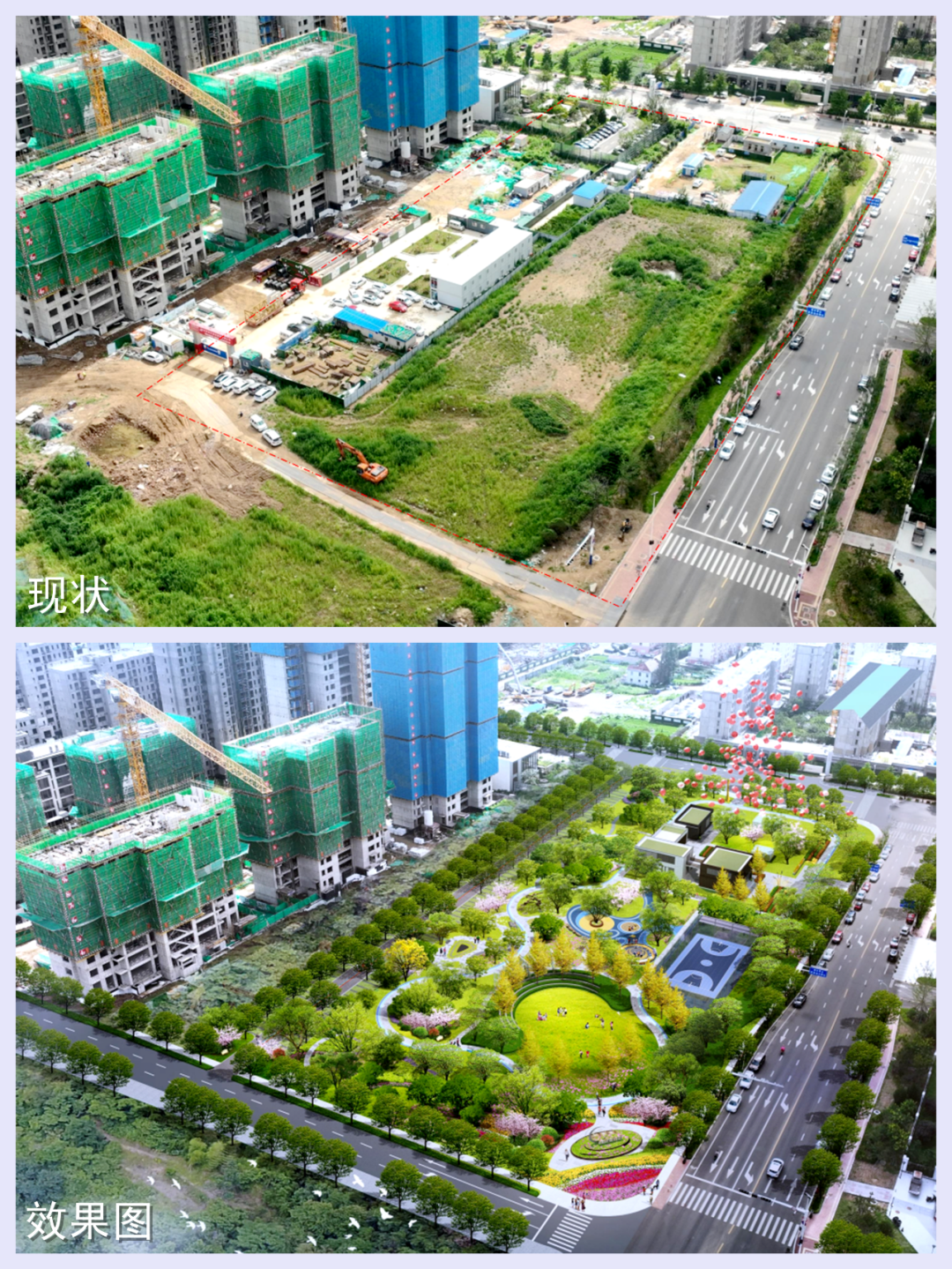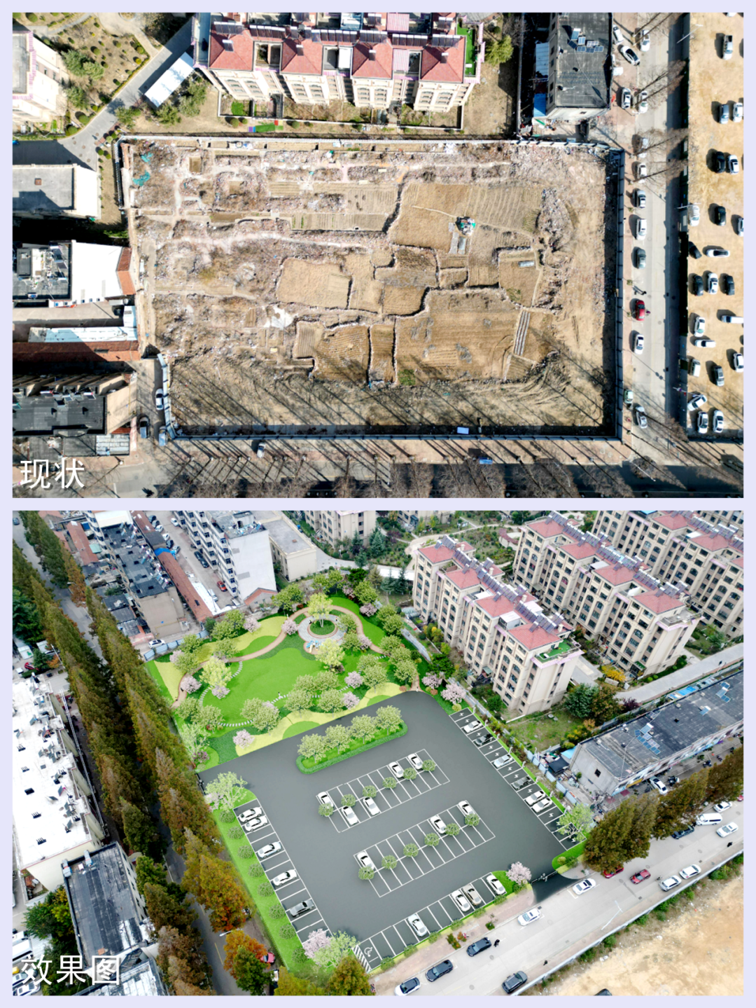 烽台路康瑞停车场、瑞民路北侧口袋公园项目地块现状和设计效果图
