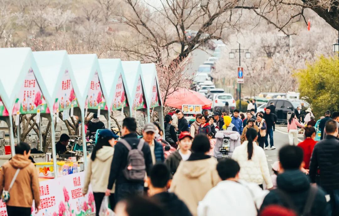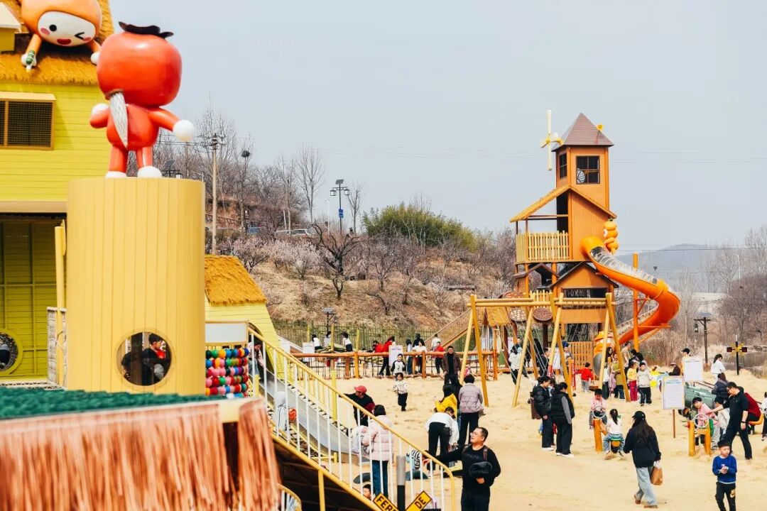 在黄泥巷露营地,一场别开生面的樱花市集早已人头攒动、热闹非凡。市集上,琳琅满目的特色农产品、创意十足的手工艺品以及香气扑鼻的地道小吃,吸引了众多游客驻足品尝选购。孩子们在山宝乐园里欢快奔跑,游客们在帐篷下惬意品茶,构成了一幅生动的乡村春游图。