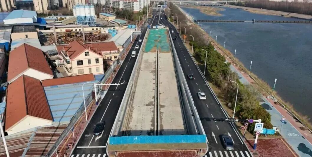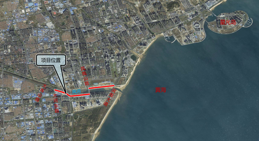 沿风河快速路东延工程为青岛市重点工程,全长约3.3千米,主线采用双向四车道设计,整体分为风河南岸与北岸道路两部分,全面建成后将成为青岛西海岸新区交通路网的重要“纽带”。