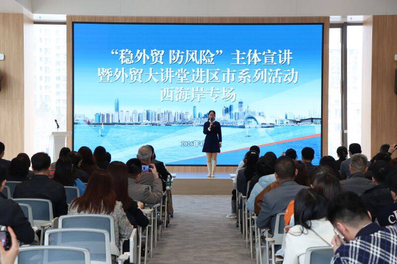 4月8日,“稳外贸 防风险”主题宣讲会暨外贸大讲堂进区市系列活动在青岛西海岸新区新质生产力中心举办。本次活动由青岛市商务局主办、青岛西海岸新区商务局承办,面向全市外贸企业开放,共吸引130家企业代表踊跃参加。