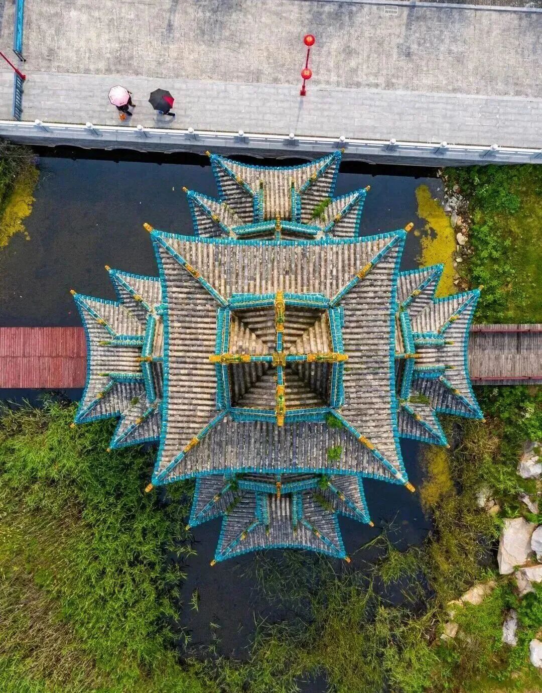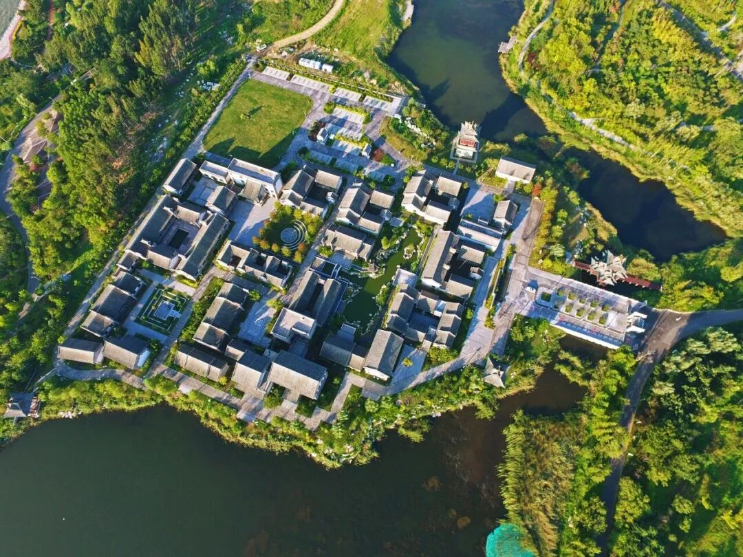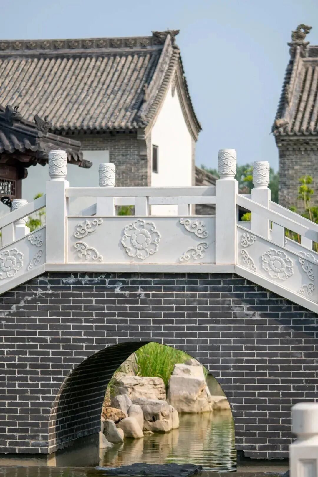 北方院子则集结了自山西、陕西整体迁建的晋派建筑,四合院落、格局方正,青砖灰瓦间尽显端庄大气。院内闲亭与石桥相映,池水倒映着古朴屋檐,游鱼嬉戏间,搅碎一池光影,更添鲜活意趣。