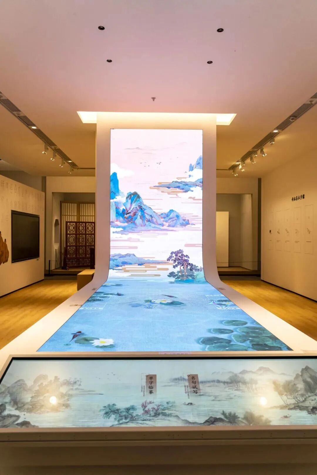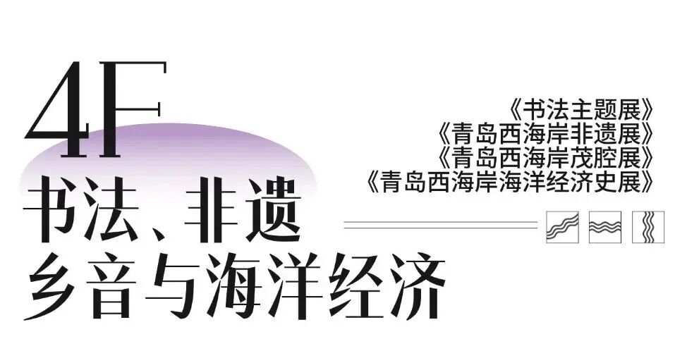 四层 《墨韵琅邪——书法主题展》《非遗里的西海岸——青岛西海岸非遗展》《乡音乡韵——青岛西海岸茂腔展》《丝路琅邪——青岛西海岸海洋经济史展》。