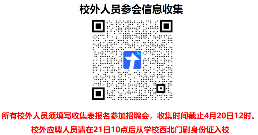 用人单位及校外参会者须扫码登记备案,招聘会当天刷身份证入校。收集时间截止4月20日12点,未扫码备案的无法入校。