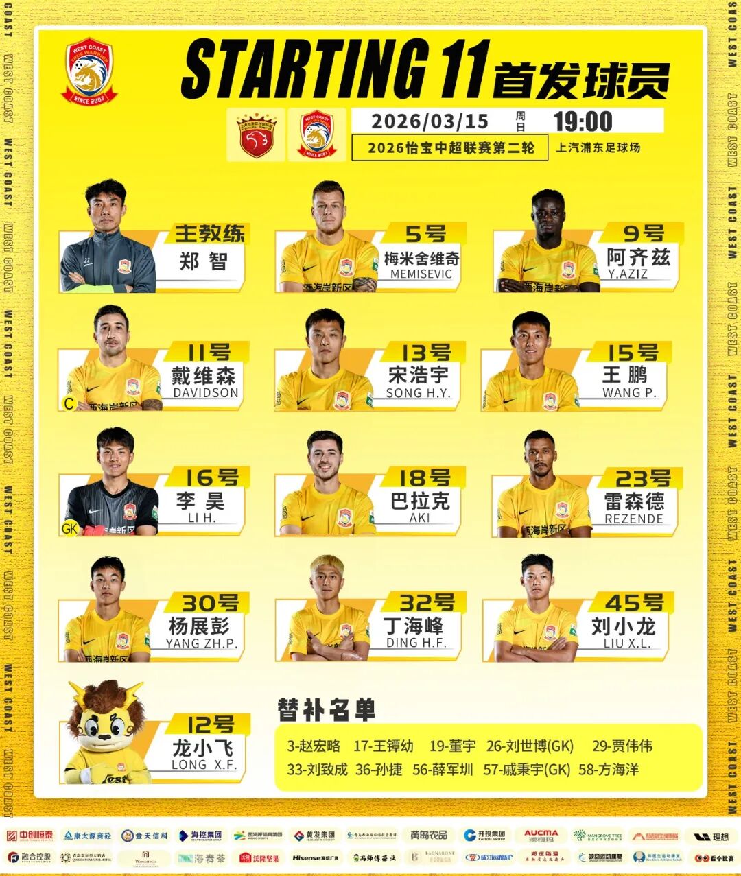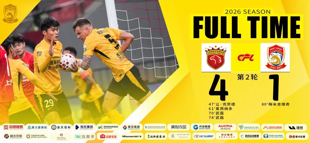 2026怡宝中超联赛第2轮今晚结束争夺,青岛西海岸队客场挑战卫冕冠军上海海港。上半场青岛西海岸队顶住对手多次有威胁的进攻,同时遗憾错失多次破门良机,下半场上海海港首先取得进球,青岛西海岸队梅米舍维奇在第80分钟接戴维森传中头槌破门,打入球队本赛季中超首球,最终,全场比赛结束青岛西海岸队客场1-4不敌对手。